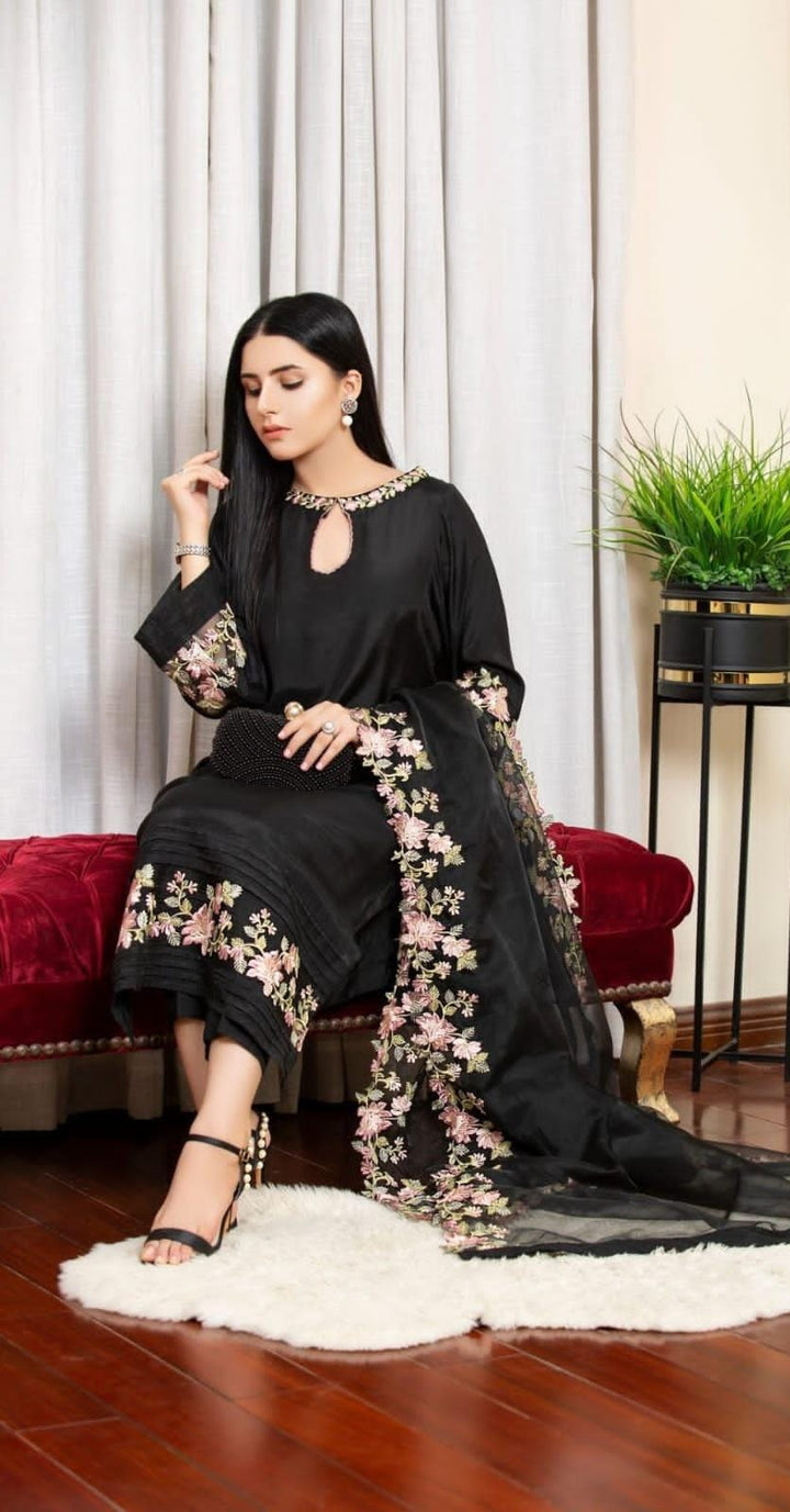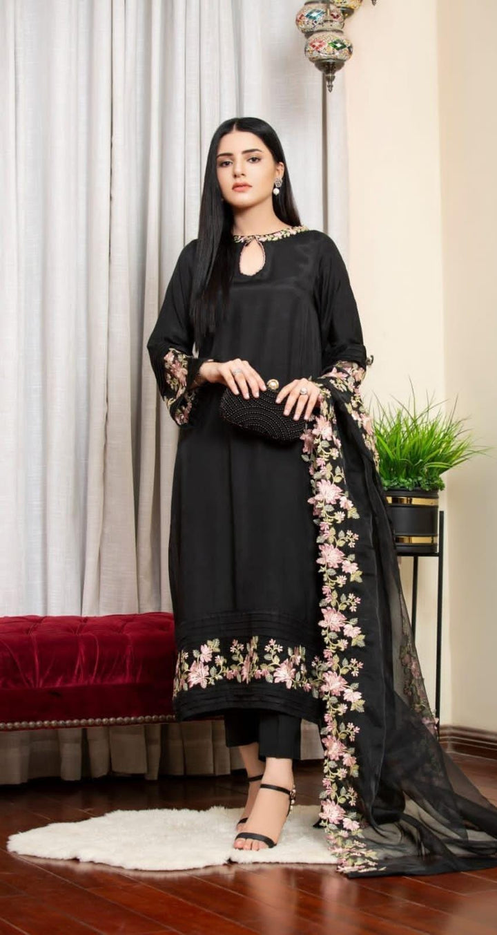 3 Piece Stitched Premium Embroidered Suit FN-179